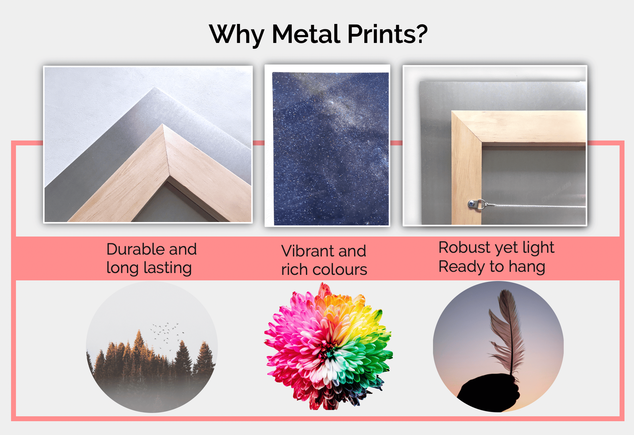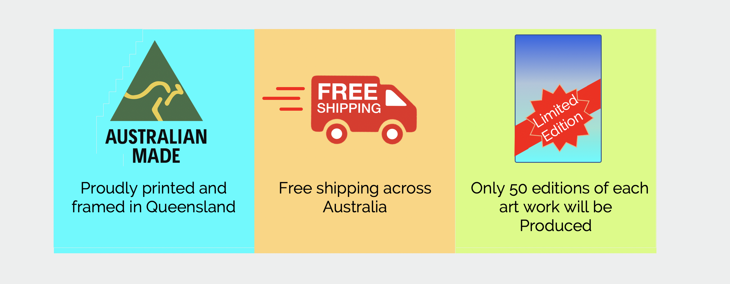All prints are done on metal, ready to hang and come with free shipping across Australia.