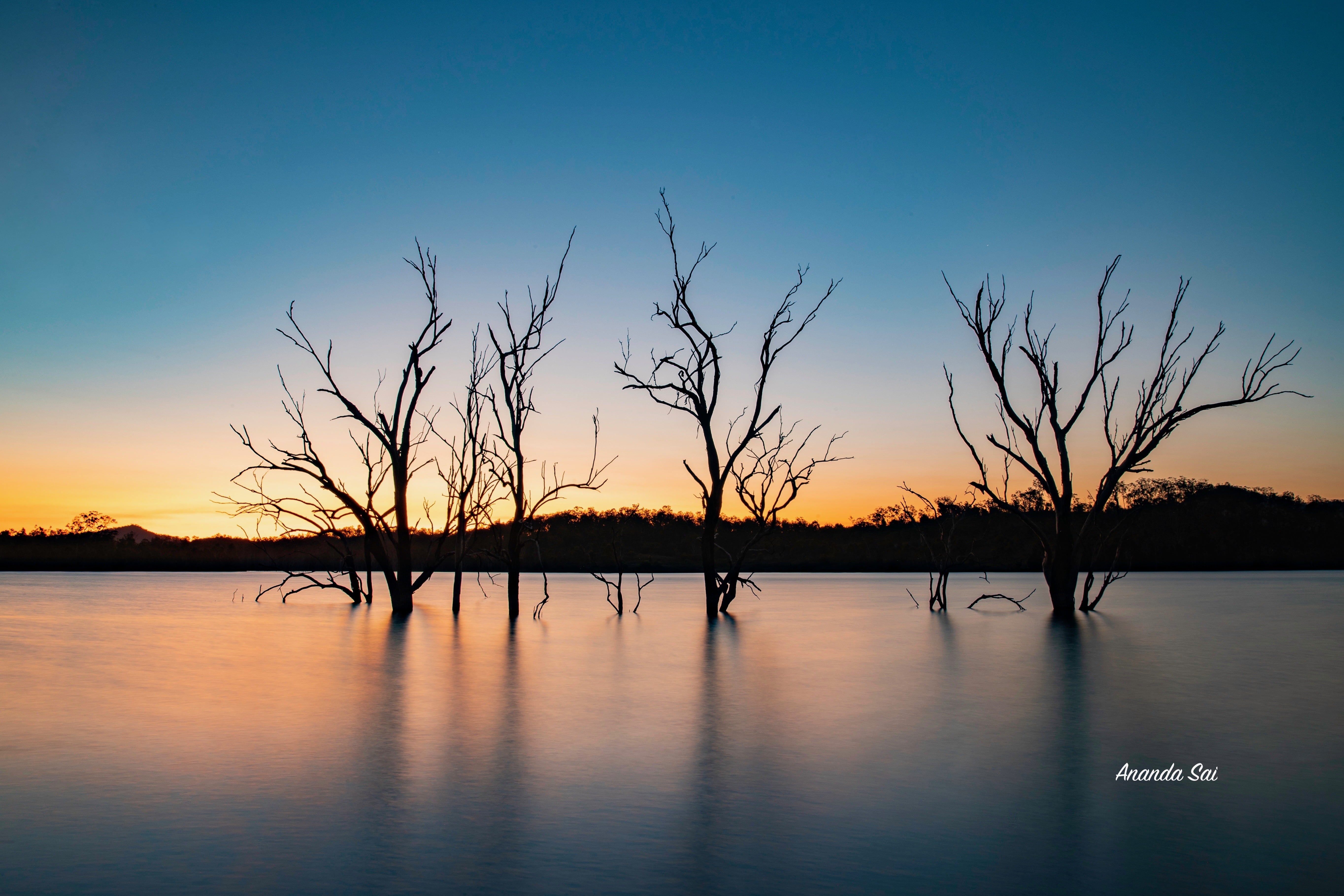 With a lovely week of clear skies, I drove out west reaching Wyralong dam to witness the Milkyway setting for the season. Before being treated to the sparkling stars, I was treated to a stunning sunset with the tall trees that still hold a presence standing in the foreground making a perfect silhouette.
