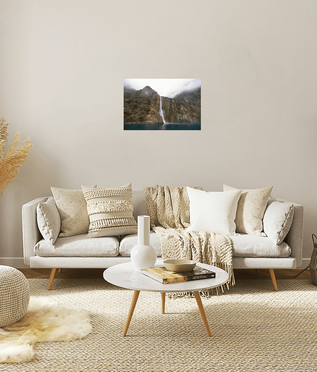 One of the few permanent falls along the Milford Sounds, Fairy Falls is a beautiful natural fall to marvel at. With the clouds sitting low, it set for a moody but beautiful scene. Slowly approaching the falls in our boat its scale started to dawn. Tall and majestic, I hope image brings a sense of wonder to the living space it is in.