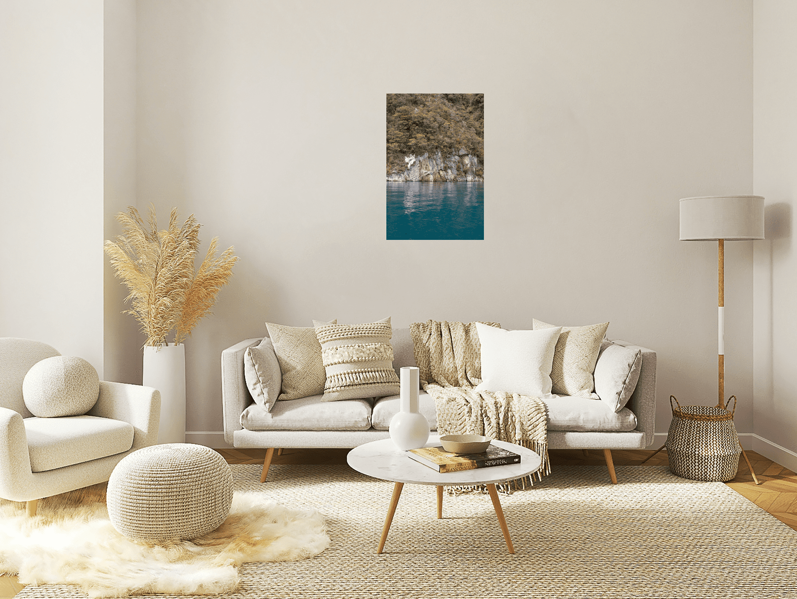 As our boat slowly sailed through the waters of Milford Sound, it was beautiful to see the blue glazier waters fresh from the mountain tops with tree foliage growing above. It’s reflection being smeared by the ripple in the waves created by our boat. With the lightly shaded rock separating the vibrant blue colours from the luscious green. I wish to translate the beauty of water sided trees through image in your living space.