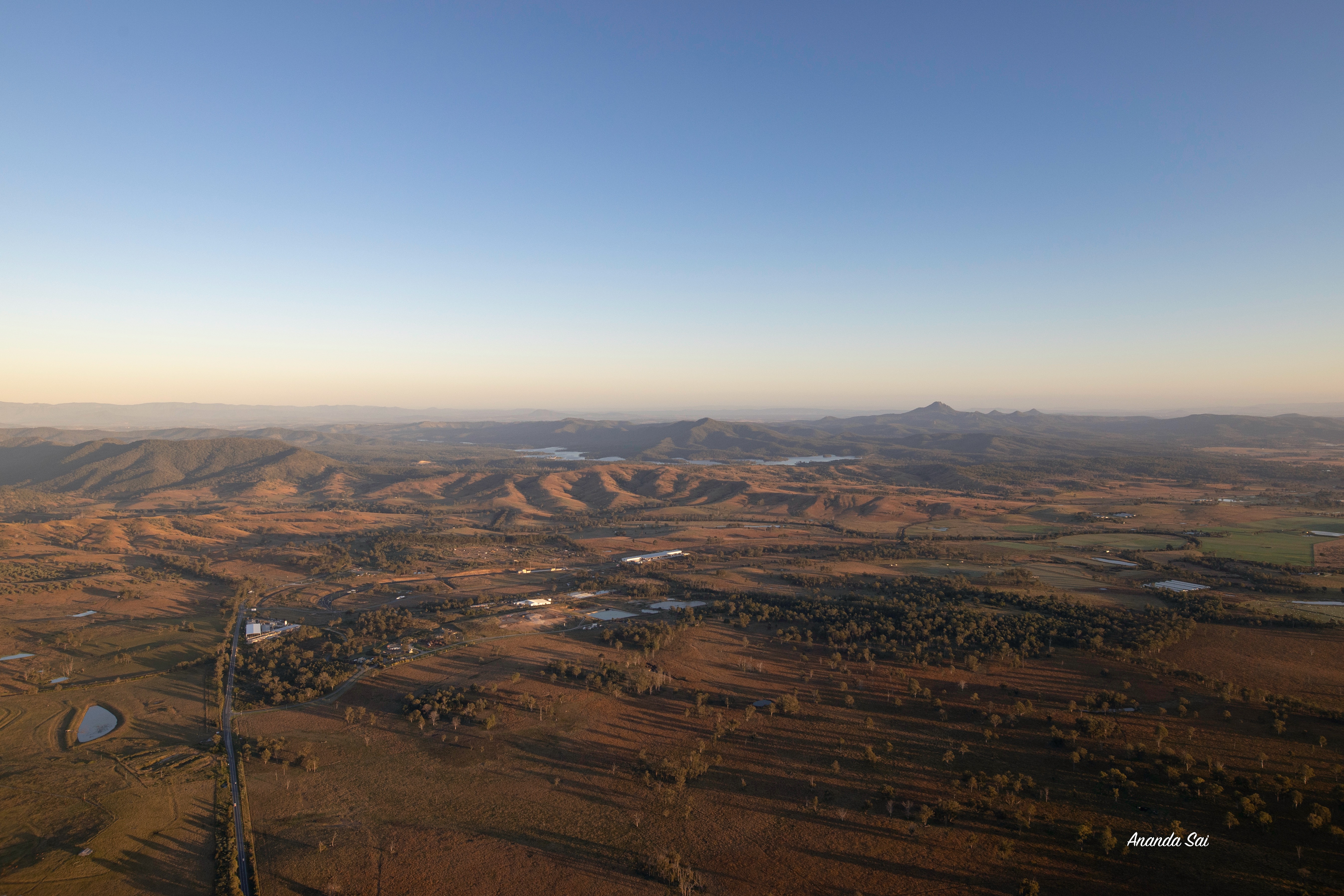 I am grateful for the opportunity to witness a peaceful sunrise from a Hot Air Balloon as we glide with the wind along the hinterland valley.