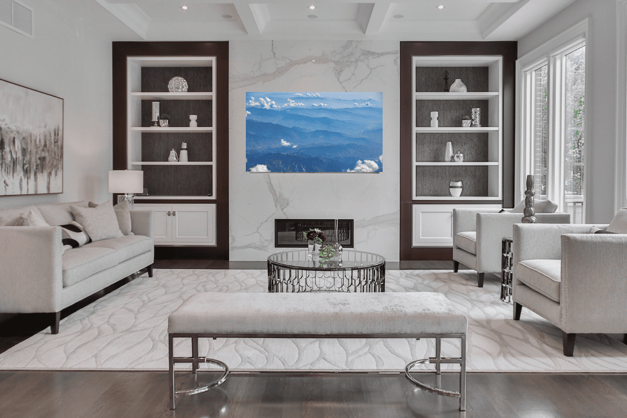 Continuing our flight over the northern part of the Himalayan ranges, we saw the mountains slowly fade back to ground. Not too long after, I saw this particular shot; rolling mountains covered in blue with communities and life scattered through it. It gave a sense of scale to see how small we are in comparison.