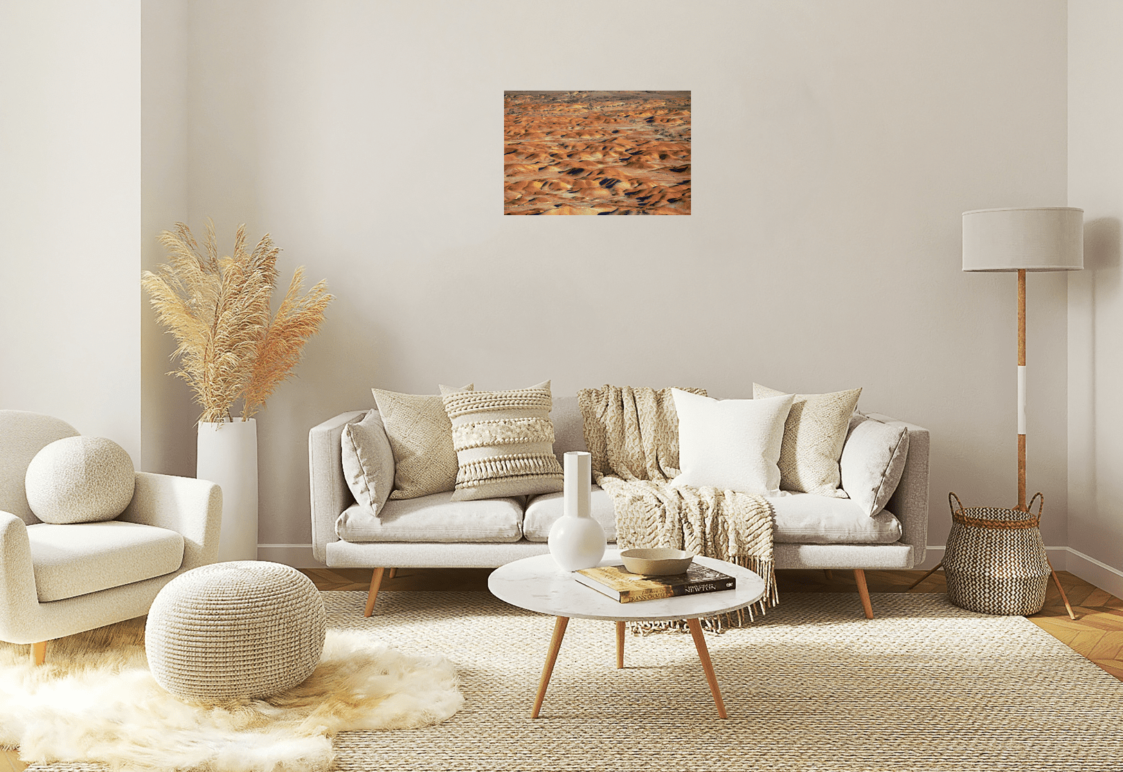 Flying out of Williams Creek and over Lake Eyre, we turned Westward and headed to Painted Hill. Arriving and flying over, it was spectacular to see a natural beauty in the middle of the Australia desert. There were many rolling hills with each trough between the peaks acting as a channel for waterways during the raining season. The dry texture with the splendid orange colour exhibited through made for a lovely composition.