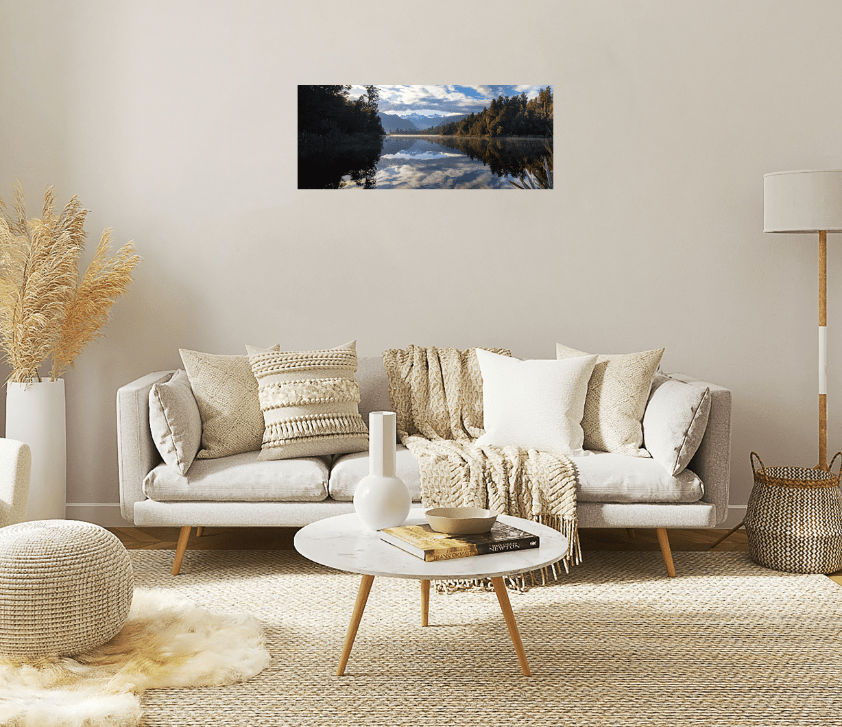 Walking around the beautiful lake, it mesmerizing to see the mist over the calm waters slowly tumble and roll along the water. As the morning sun peaked through the clouds, the leaves started to show off it beautiful green colours. The warm light was nice to see and feel. Despite being nearly summer, I was covered up in layers to survive the South Island cold. The calming and comforting feeling is what I aim to translate to your space with this image.