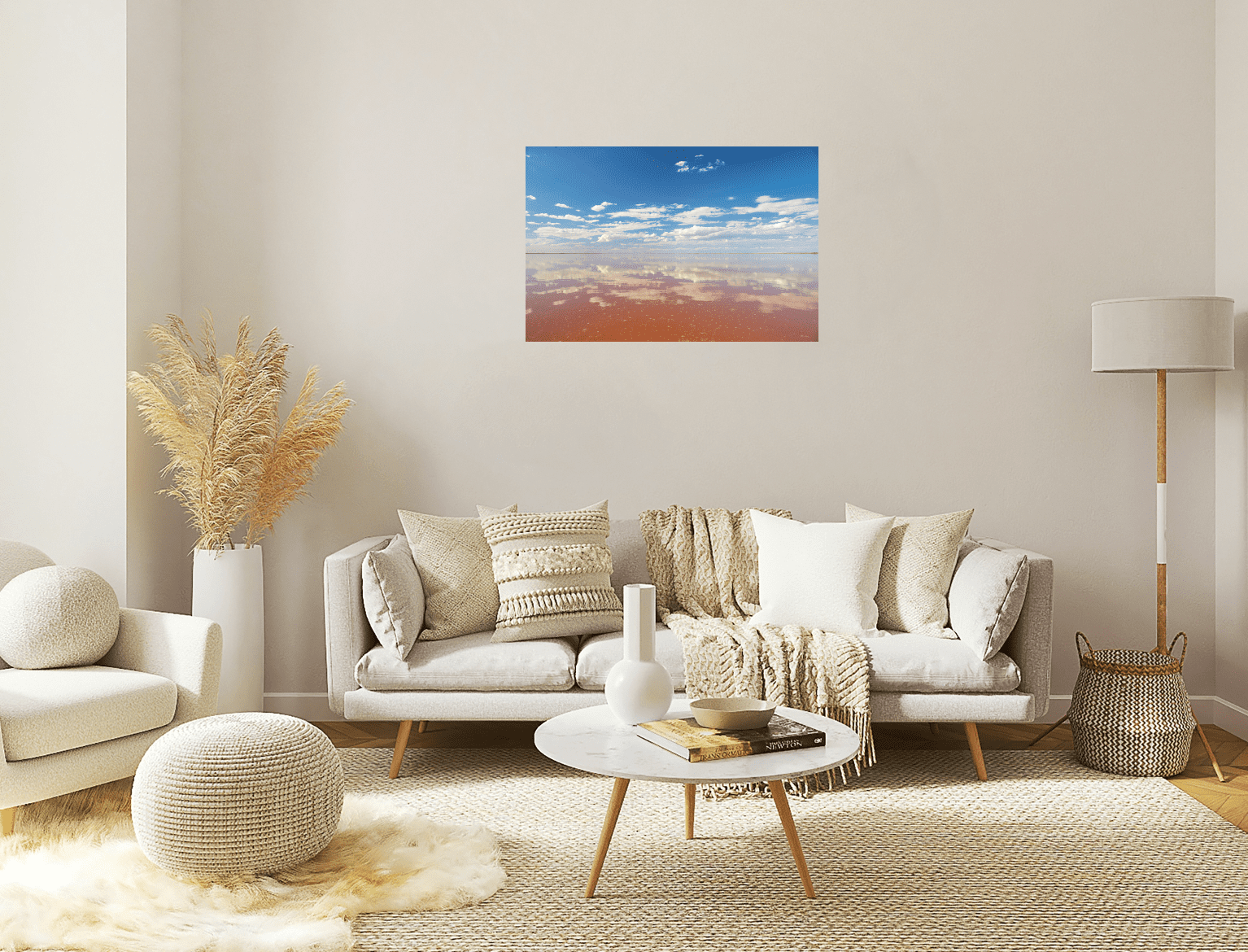 Travelling for hours, we stopped at Lake Tyrell for a break. Having rained a couple weeks prior, we were overjoyed to still see water left in the lake. Walking towards the edge, it was mesmerizing to see a clear reflection of the sky with difficulty in differentiating where the land meets the atmosphere. It is amazing to see a natural beauty so remote. Being the peak of summer we were ambushed by flies. Yet that couldn’t take away from seeing a natural beauty of a pinkish salt lake with calm water to create a perfect reflection. I wish to translate the feeling of peace through this image in your living space.