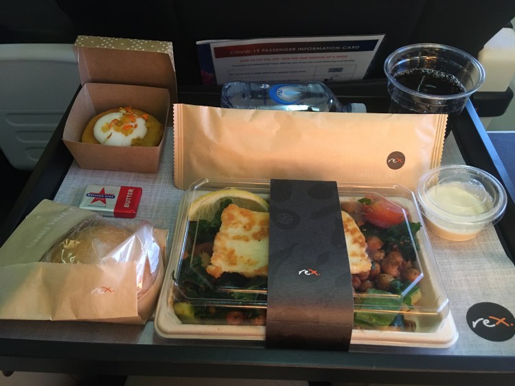Once I boarded the aircraft, the air hostess greeted everyone with a smile and directed me to my seat, 2F. There were 8 business class seats in total and 168 economy seats in total on this aircraft. My flight today consisted of ~160 passengers with 2 pilots and 5 air hostess. The seats were nicely presented with plenty of width and leg room. Upon research, I found out that these seats are the exact same as Virgin’s business class seats which were part of the airplane when Rex purchased it with the logo being the only difference. The seats were nicely presented however the aircraft did feel a bit old. A bit of mood lighting could fix that though.